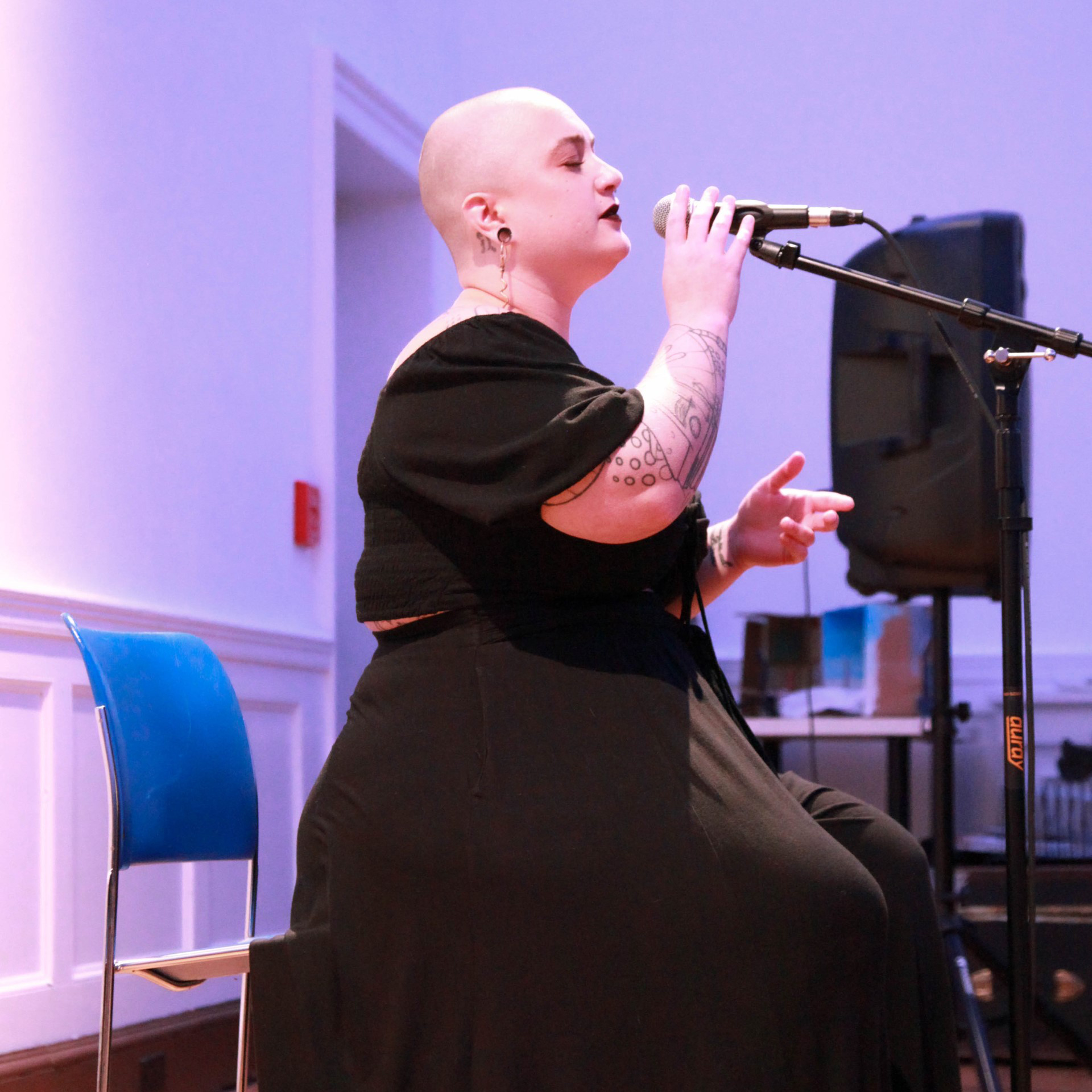 Tiffany Lyn Royster (She/They) is a singer, actor, and activist in the Washington D.C. area. Ministering through song and performance art, Tiffany Lyn advocates for human rights and LGBTQ+ rights with Capital Pride Alliance where she is the celebration chair for the organization, international organization, InterPride, where she sits on the Global Advisory Council and United States Association of Prides where she sits as a District Vice President. She has performed in many shows and cabarets at places such as The Kennedy Center, Hamilton Live!, Anacostia Arts Center; more recently Olney Theatre Center in World Premiere Musical “A.D. 16” and has credit as a backup singer for Michael Bublé.