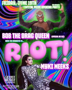 RIOT! is the Official Opening Dance Party of Capital Pride! This year, we are featuring the internationally famous BOB The Drag Queen performing a special DJ set. As if that is not enough, our headlining performer is Myki Meeks, a finalist of RuPaul’s Drag Race season 18! Additionally, we have assembled an amazing line-up of the region’s most talented performers and DJs! This is primed to be a completely remarkable experience to start Capital Pride weekend!